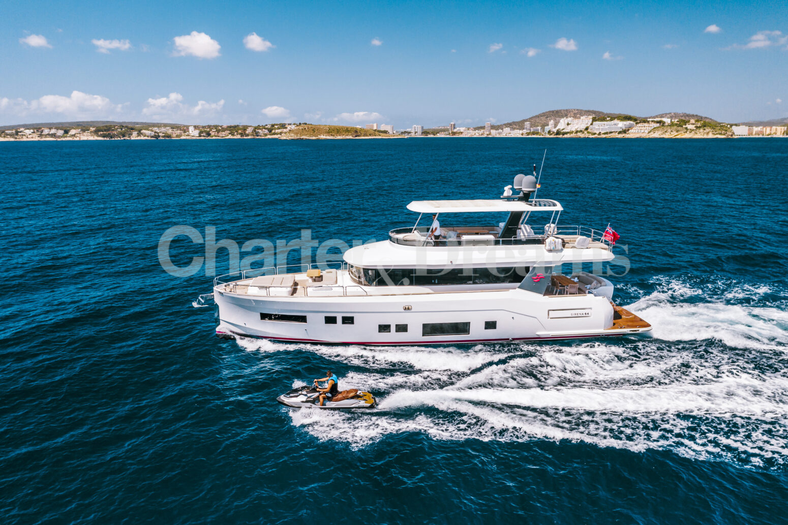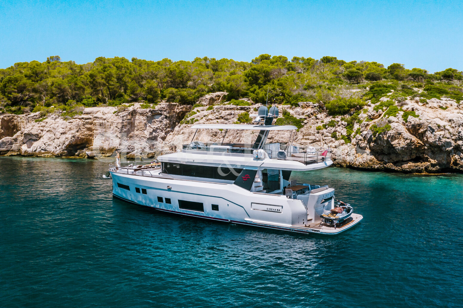 Sube a bordo de SALACIA, un elegante Sirena 64 de 21 metros diseñado para disfrutar de días relajados en el mar alrededor de Mallorca, Ibiza y Formentera.