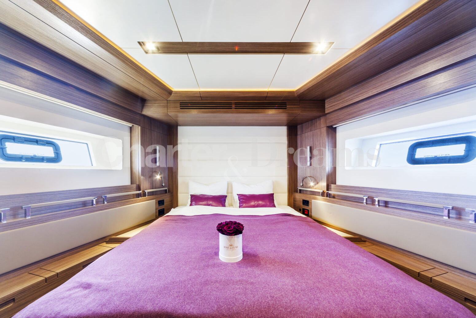 Durante la noche, SALACIA ofrece alojamiento para hasta 6 invitados en tres camarotes: una suite principal de manga completa, un camarote VIP doble y un camarote doble. Durante el día, puede acoger hasta 12 invitados, siendo ideal tanto para charters privados como para encuentros sociales en el mar.